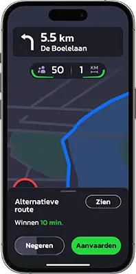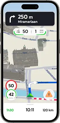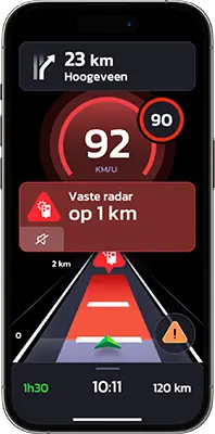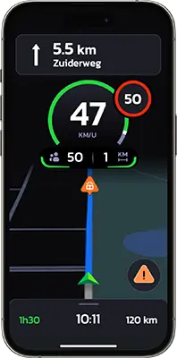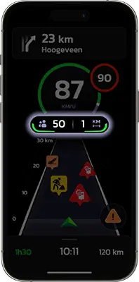 Reken op de betrouwbare waarschuwingen van onze 5 miljoen leden, in real time gecontroleerd door ons gepatenteerde algoritme, met een prognose van 30 km.